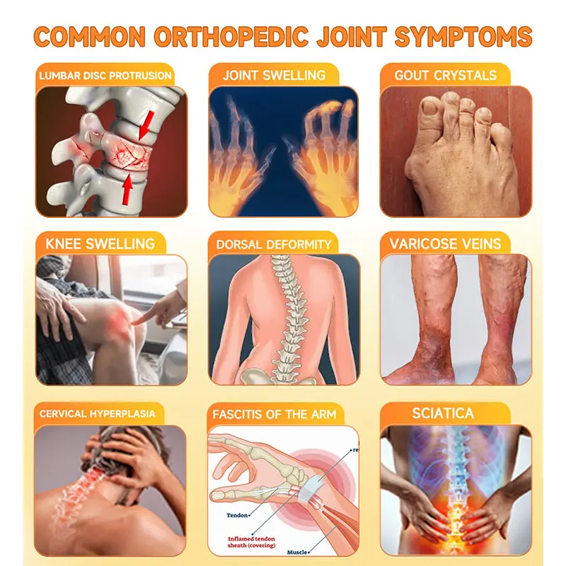 According to statistics, 35% of the global population suffers from joint issues, with 1 in every 5 people experiencing varying degrees of joint problems. Mild cases include conditions such as arthritis, rheumatoid diseases, and gout, with symptoms like pain, stiffness, swelling, difficulty moving, fatigue, and reduced range of motion. In severe cases, joint deformities, fever, and intense joint pain can occur, leading to chronic pain and disability. In the most severe cases, orthopedic diseases can trigger life-threatening complications.