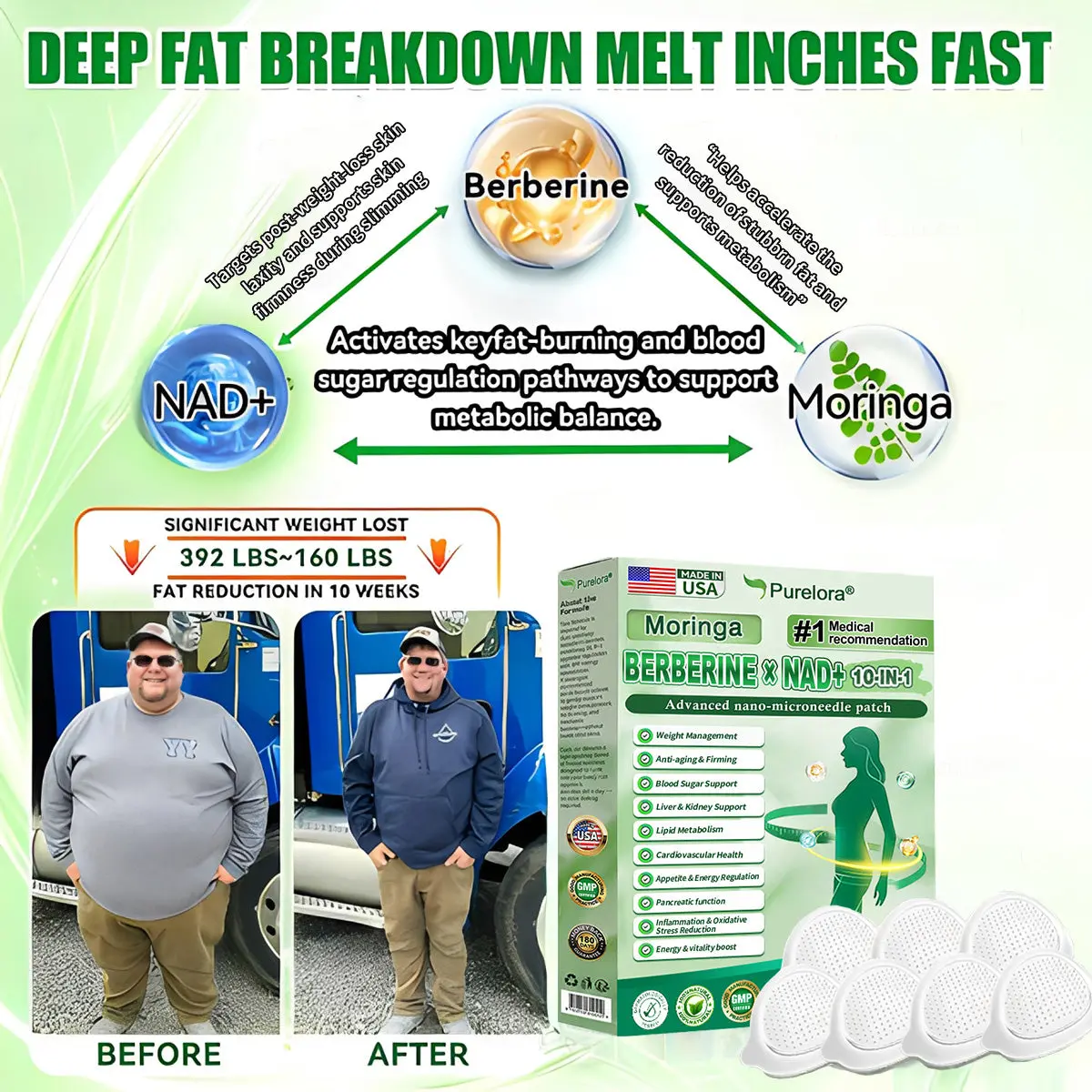 Purelora® Moringa Berberine × NAD⁺ 10-in-1 Nano Microneedle Patch: 98% absorption rate – for sustainable improvement in weight, liver, gut and skin health