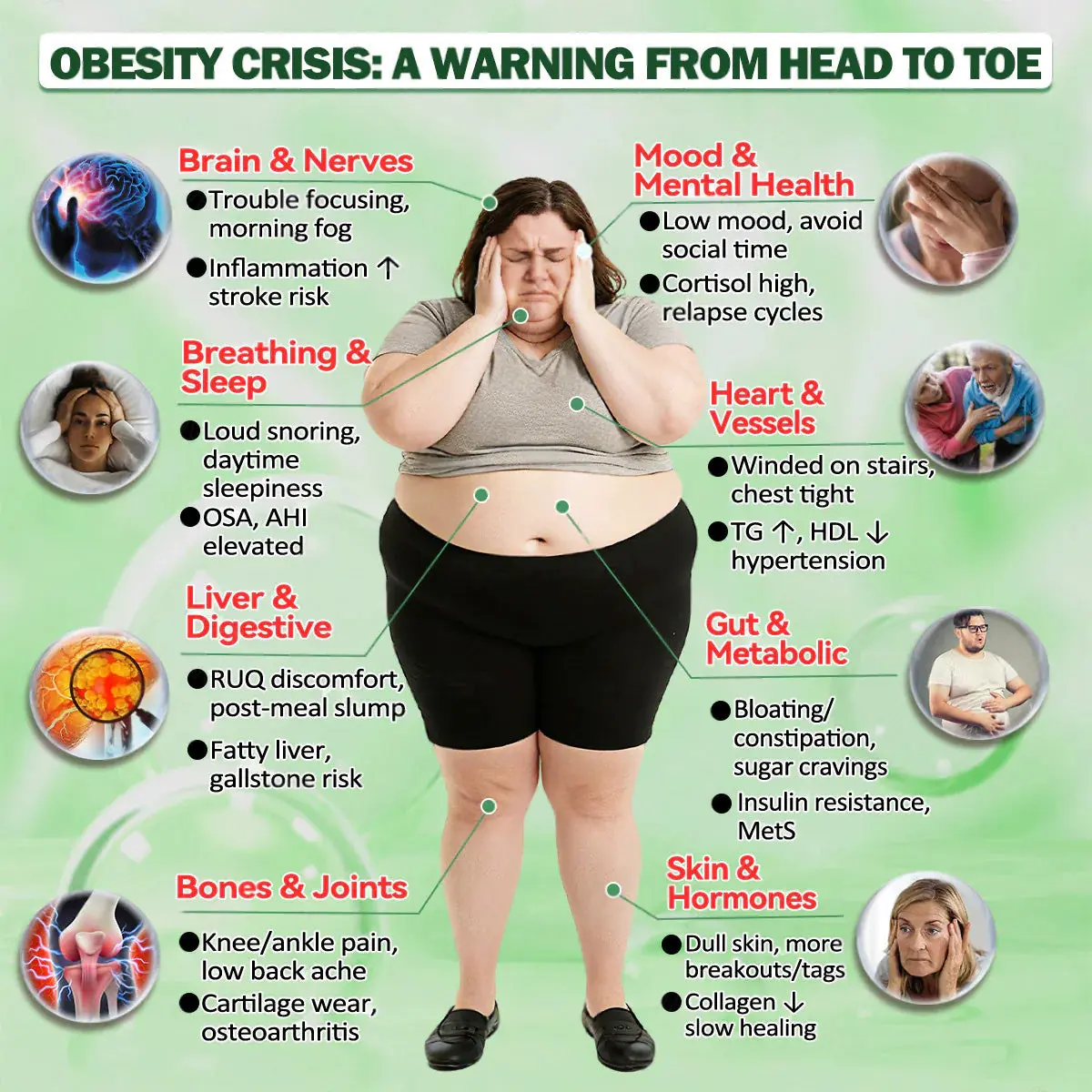 Many believe that being overweight is just a matter of appearance – but internally, it silently endangers your body. Abdominal fat puts pressure on the heart and lungs, making every breath and every step feel heavier. It clogs the arteries and increases the risk of heart attack or stroke. Year after year, this strain accelerates the aging process, weakens organs, and robs you of the energy to enjoy life to the fullest.