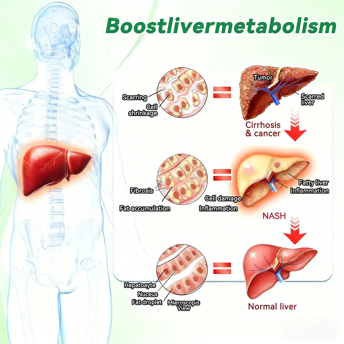 Milk thistle enhances liver detoxification by increasing the activity of phase I and II enzymes, accelerating fat burning, and boosting mitochondrial energy production. Combined with curcumin, it further enhances detoxification efficiency, significantly reduces lipid accumulation, and supports mitochondrial health. Together, this powerful combination promotes improved metabolic cleansing, reduces inflammation, and supports overall liver health. With continuous use, this synergy not only improves liver function, balances cholesterol levels, and increases insulin sensitivity, but also helps restore optimal metabolic efficiency and strengthen the body’s natural detoxification processes.