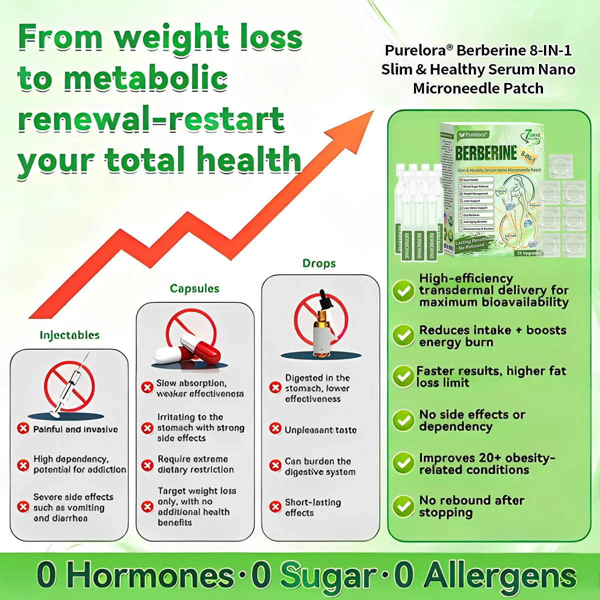 Pureloraยฎ 8-in-1 Slim & Healthy Serum Nano Microneedle Patch is an advanced dual-delivery system that combines a high-concentration active serum with next-generation nano microneedle patch technology. Developed over more than 20 years by a multidisciplinary team of 30+ experts, this innovative solution is designed to maximize bioavailability while remaining gentle, precise, and virtually painless.